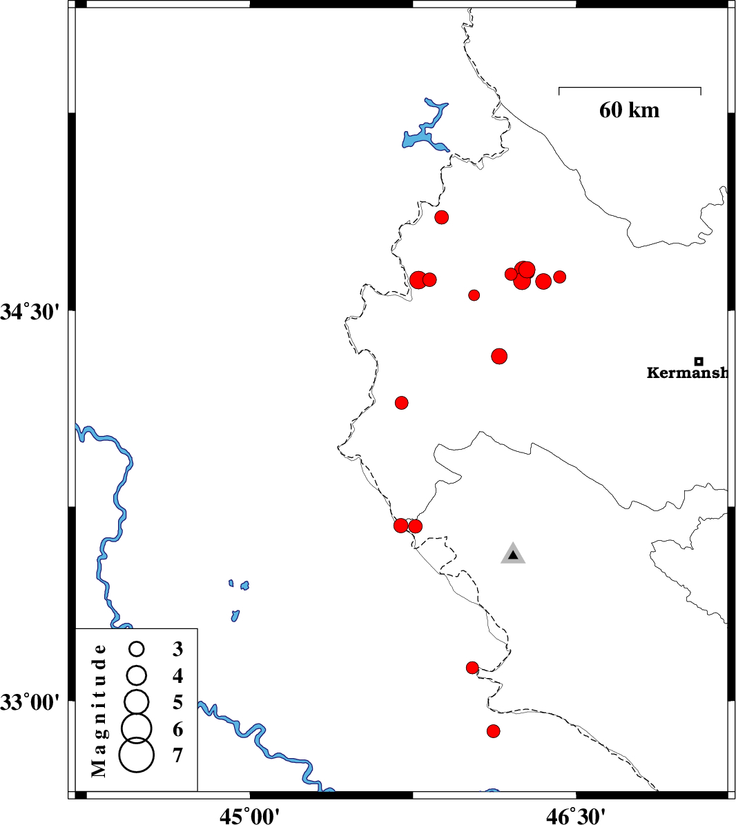 | 2018/08/12 | 04:16:21.9 | 08:46:21.9 | 32.882 | 46.119 | 6 | ML2.7 | Iraq, 27 km South of Mehran |