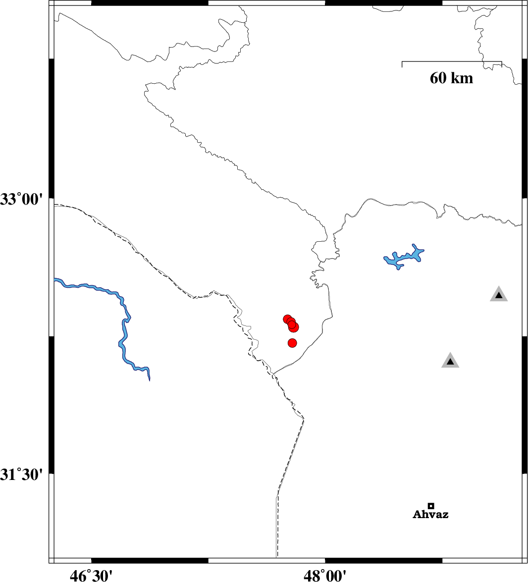 2018/08/19 | 05:32:40.1 | 10:02:40.1 | 32.535 | 47.761 | 14 | ML:3.7 | Ilam Province, 50 km South-East of Dehloran | ||