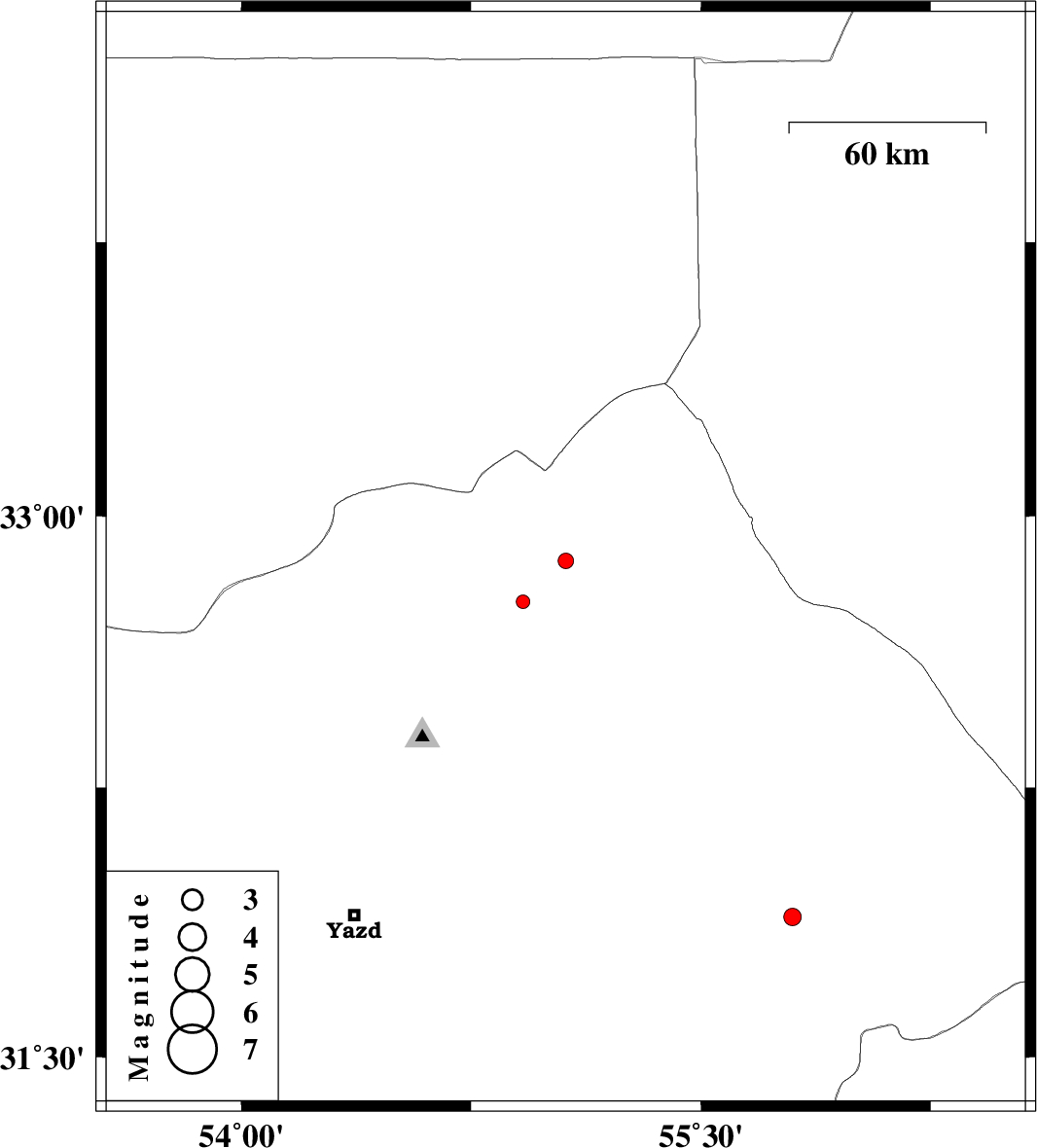 | 2018/07/30 | 08:10:34.7 | 12:40:34.7 | 31.89 | 55.799 | 14 | ML2.5 | Yazd Province, 50 km North-East of Bafq |