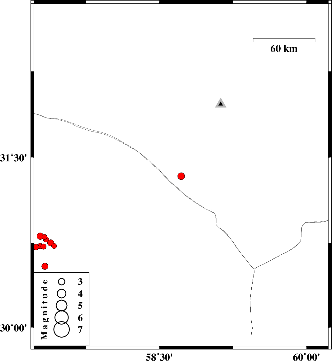 | 2018/07/25 | 12:10:25.5 | 16:40:25.5 | 30.03 | 57.632 | 16 | ML2.8 | Kerman Province, 60 km South-East of Kerman | ||