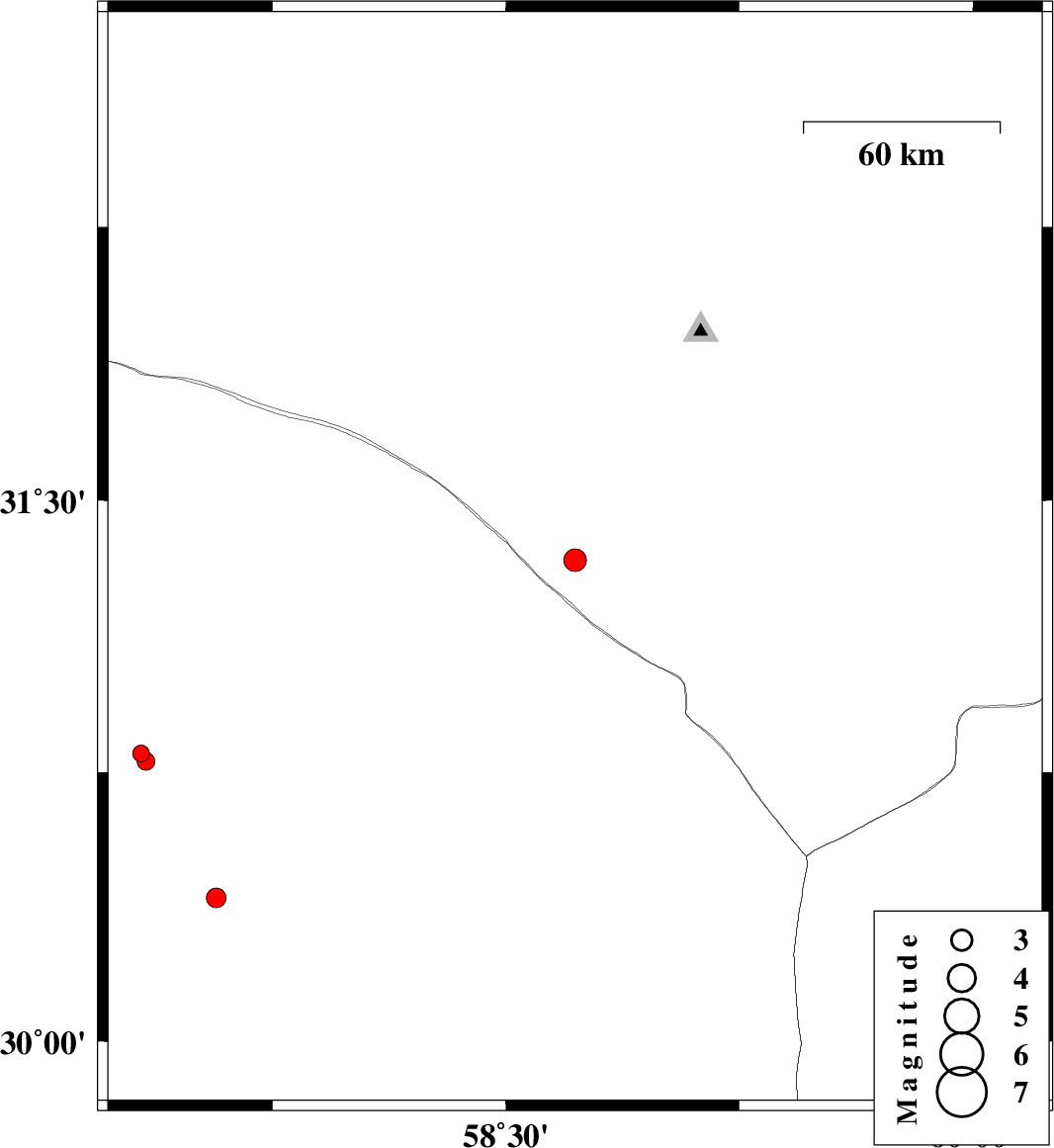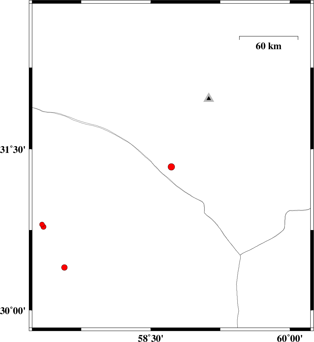 | 2018/08/16 | 05:06:49.9 | 09:36:49.9 | 31.336 | 58.722 | 14 | ML3.2 | Khorasan(south) Province, 127 km South-West of Nehbandan | ||