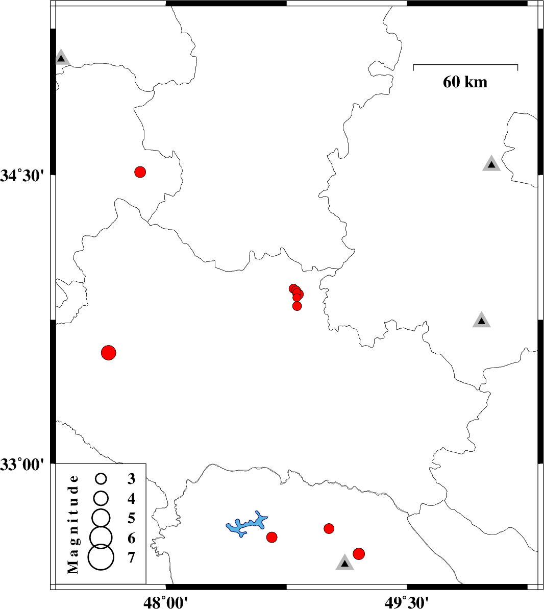 | 2018/08/19 | 05:30:57.2 | 10:00:57.2 | 33.822 | 48.816 | 14 | ML2.6 | Lorestan Province, 10 km of Borujerd | ||