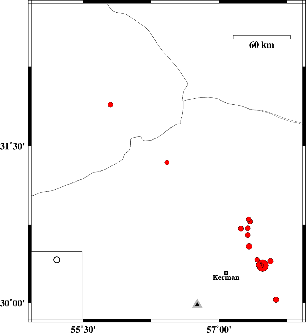 | 2018/07/22 | 20:39:15.6 | 01:09:15.6 | 30.358 | 57.483 | 14 | ML5.8 | Kerman Province, 40 km -East of Kerman |