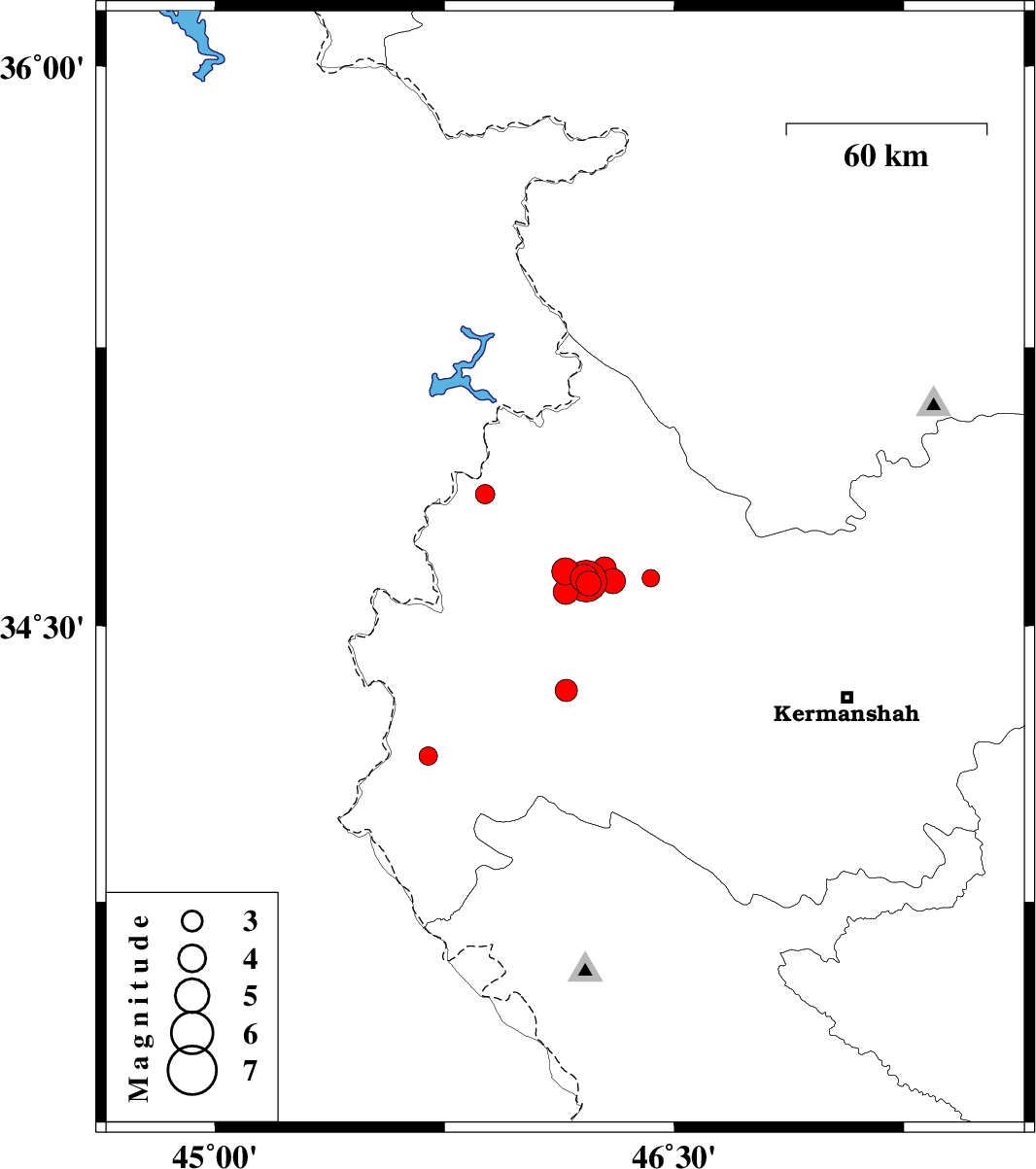 | 2018/08/25 | 22:47:47.3 | 03:17:47.3 | 34.647 | 46.144 | 6 | ML4 | Kermanshah Province, 31 km South-East of Tazehabad | ||