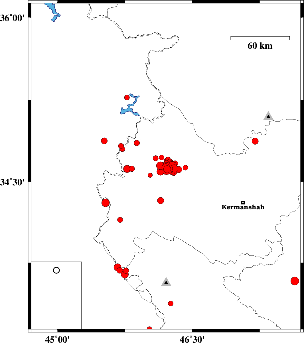 | 2018/08/13 | 09:34:55.9 | 14:04:55.9 | 34.645 | 46.28 | 15 | ML2.5 | Kermanshah Province, 26 km South-West of Javanrud | ||