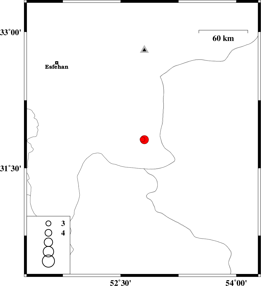 2018/09/03 | 01:14:57.6 | 05:44:57.6 | 31.818 | 52.782 | 14 | ML2.9 | Esfahan Province, 74 km North-East of Abadan | ||