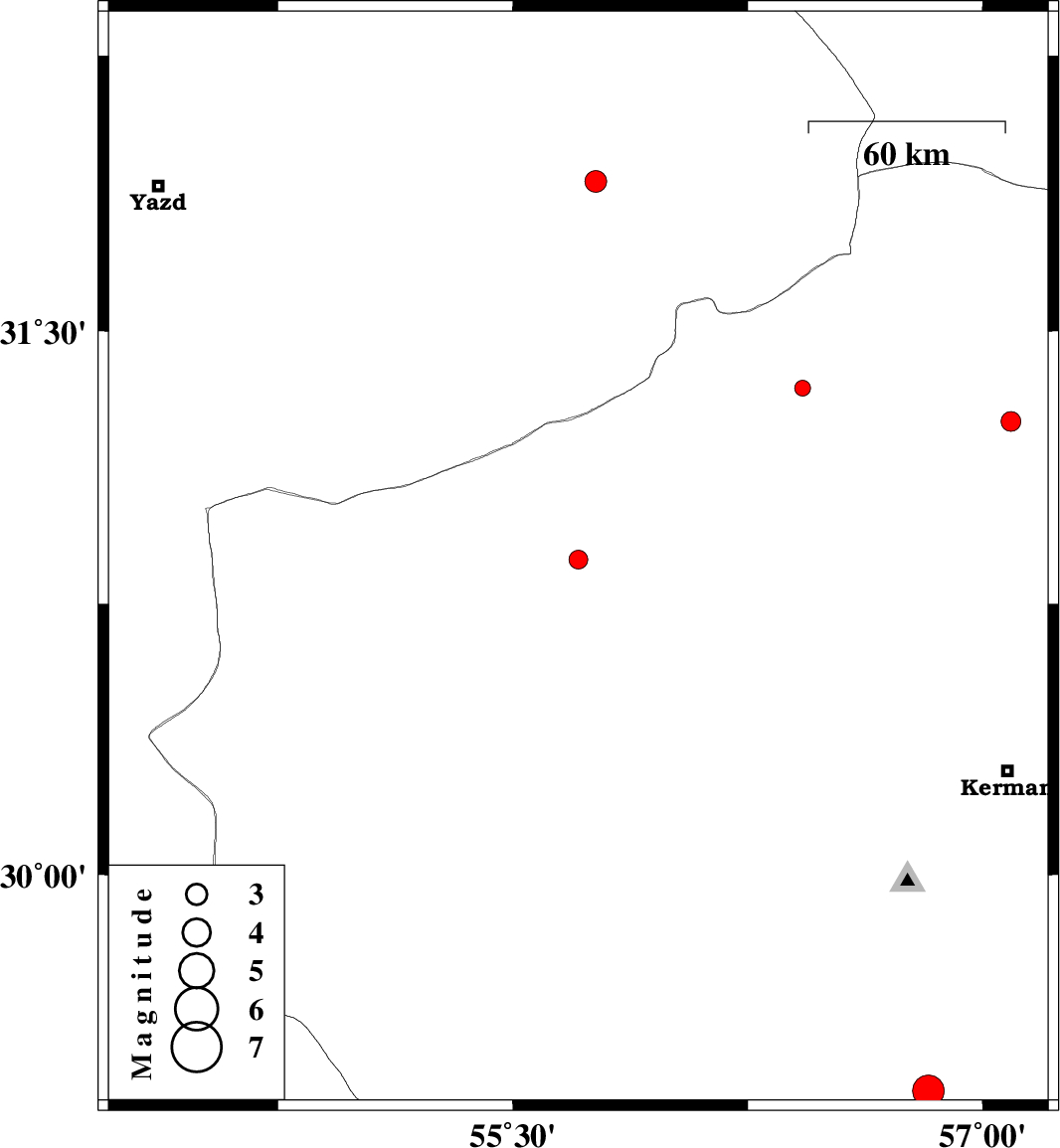 | 2018/08/21 | 01:23:57.7 | 05:53:57.7 | 31.343 | 56.425 | 18 | ML2.2 | Kerman Province, 38 km -West of Ravar |