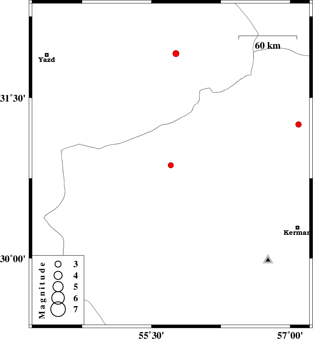 | 2018/09/04 | 14:18:53.2 | 18:48:53.2 | 30.872 | 55.709 | 14 | ML2.7 | Kerman Province, 59 km North-West of Rafsanjan | ||