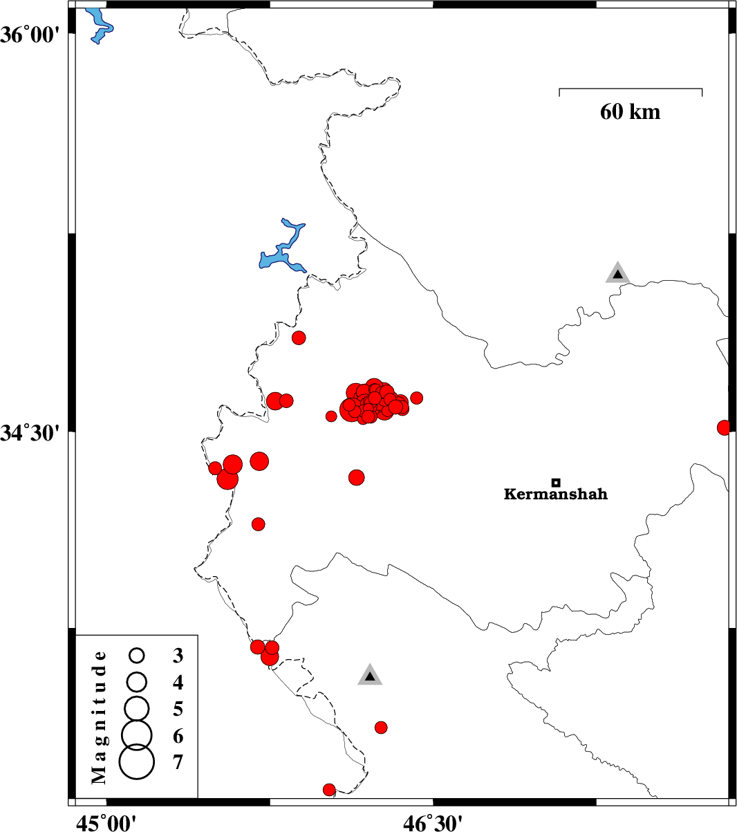 | 2018/08/08 | 13:11:42.9 | 17:41:42.9 | 34.616 | 46.264 | 15 | ML3.5 | Kermanshah Province, 29 km South-West of Javanrud |