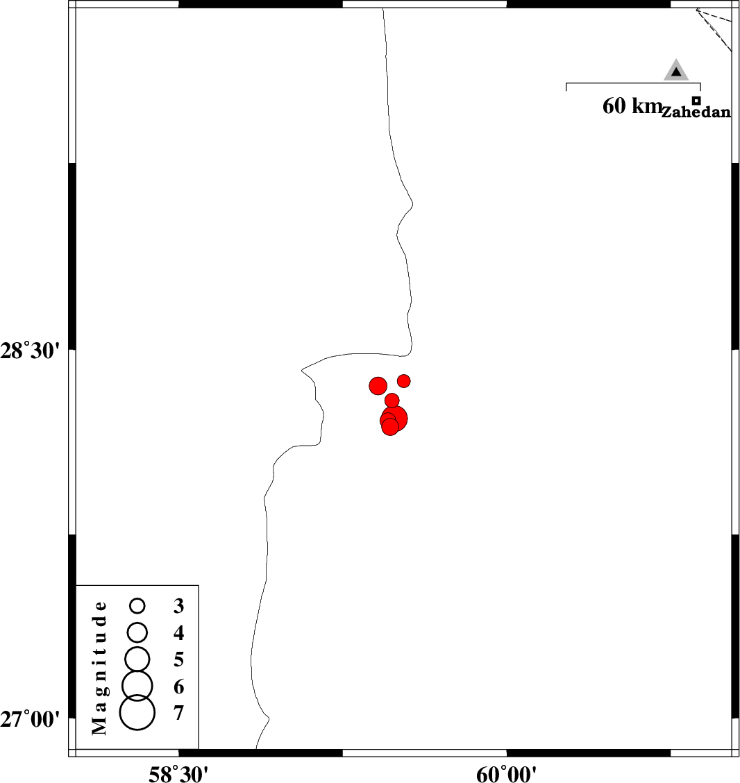 | 2018/09/07 | 06:12:05.3 | 10:42:05.3 | 28.353 | 59.411 | 14 | ML3.6 | Sistan va Baloochestan Province, 133 km South-East of Bam |