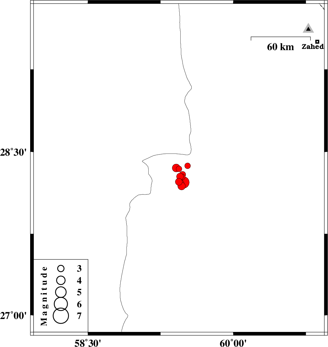 | 2018/09/07 | 06:12:05.3 | 10:42:05.3 | 28.353 | 59.411 | 14 | ML3.6 | Sistan va Baloochestan Province, 133 km South-East of Bam |