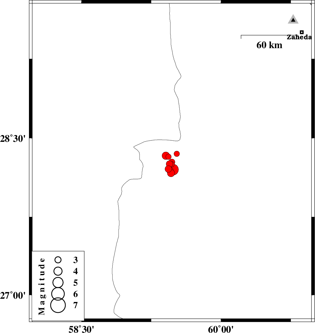 | 2018/09/07 | 06:12:05.3 | 10:42:05.3 | 28.353 | 59.411 | 14 | ML3.6 | Sistan va Baloochestan Province, 133 km South-East of Bam |