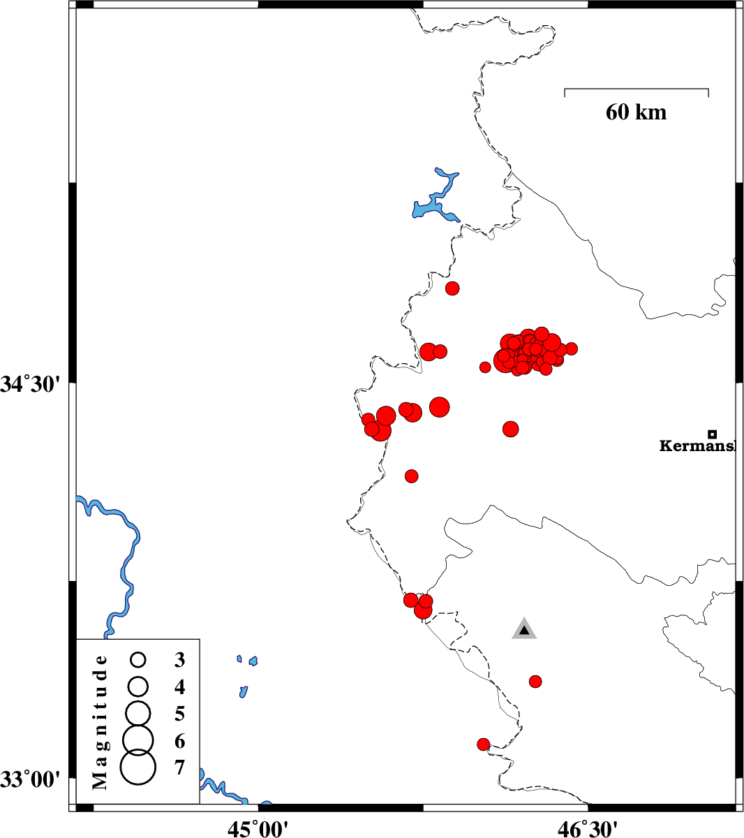| 2018/08/26 | 08:25:04.3 | 12:55:04.3 | 34.611 | 46.255 | 15 | ML4 | Kermanshah Province, 30 km South-West of Javanrud | ||