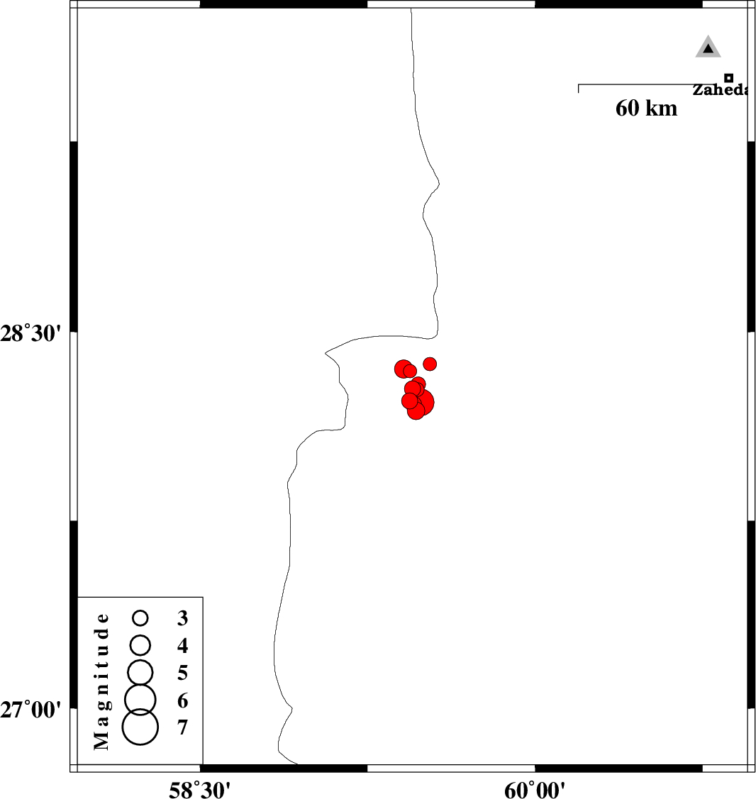 | 2018/09/07 | 06:12:05.3 | 10:42:05.3 | 28.353 | 59.411 | 14 | ML3.6 | Sistan va Baloochestan Province, 133 km South-East of Bam |