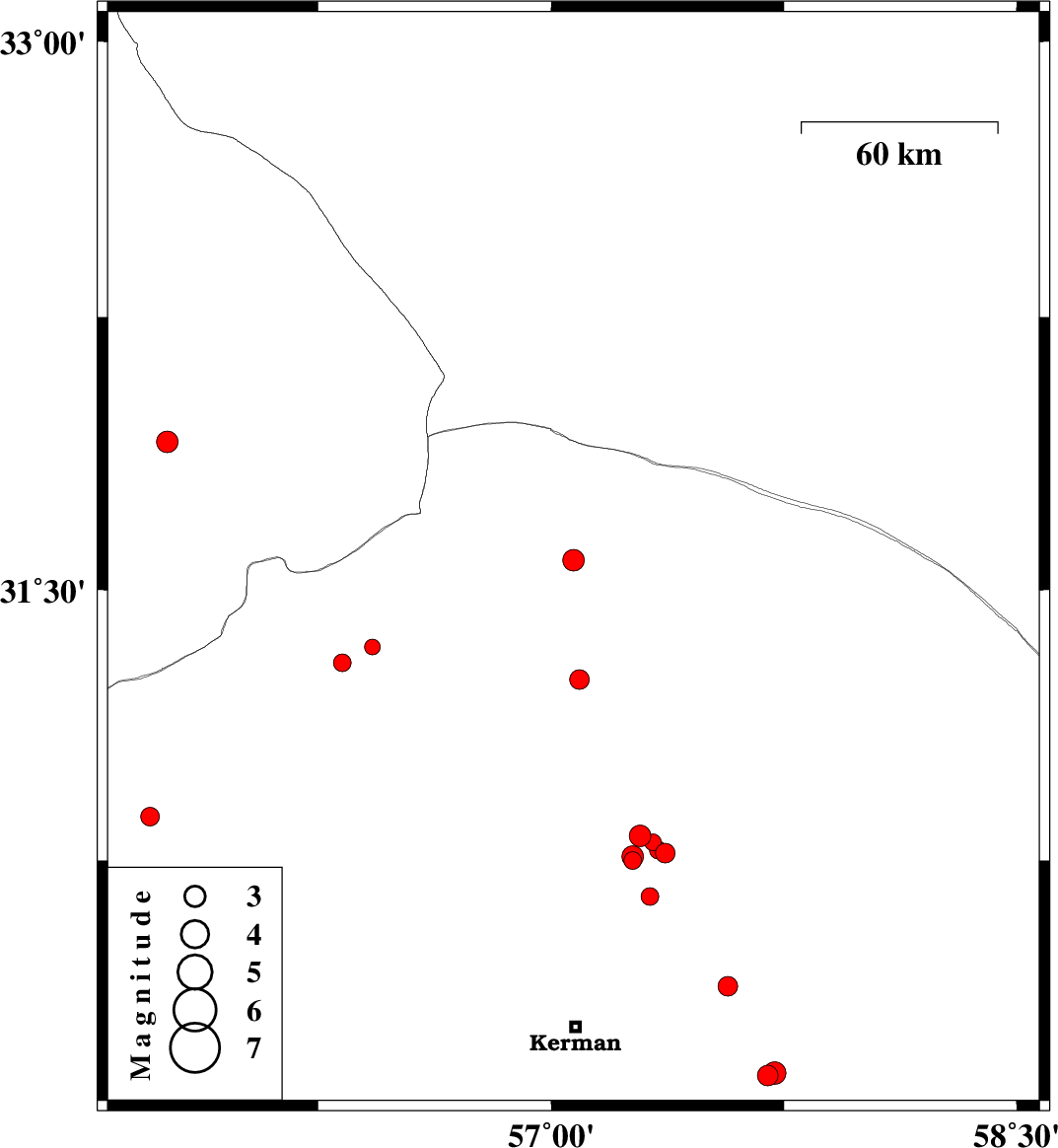 | 2018/09/04 | 17:35:42.3 | 22:05:42.3 | 30.771 | 57.368 | 14 | ML2.8 | Kerman Province, 60 km North-East of Kerman | ||