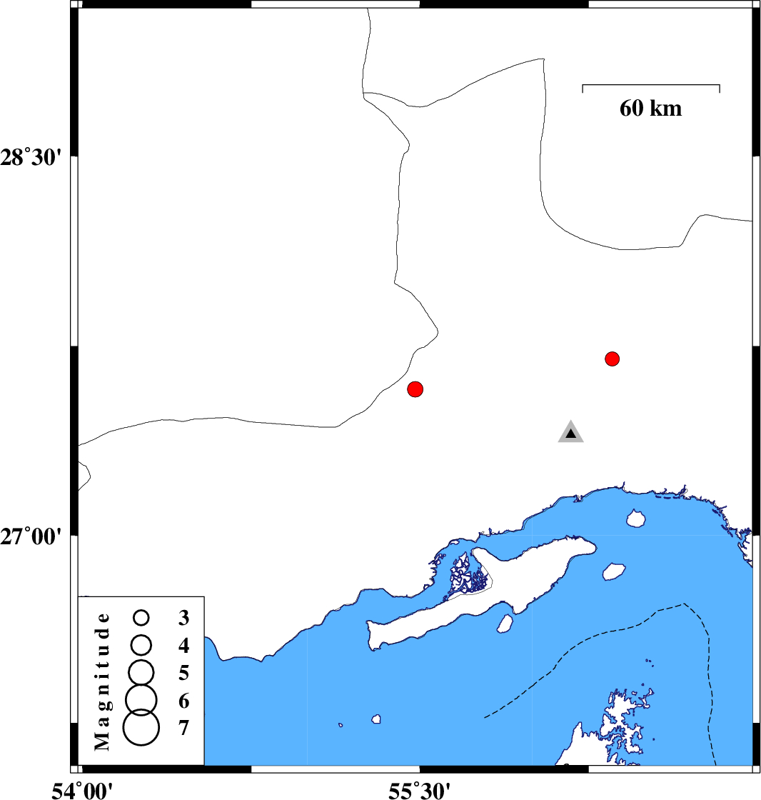 | 2018/09/14 | 07:18:44.3 | 11:48:44.3 | 27.58 | 55.479 | 6 | ML3.1 | Hormozgan Province, 91 km South-West of Hajiabad | ||