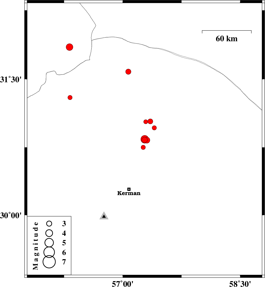 2018/09/08 15:19:41.6 19:49:41.6 30.75157.26218 ML2.6 Kerman Province, 54 km North-East of Kerman