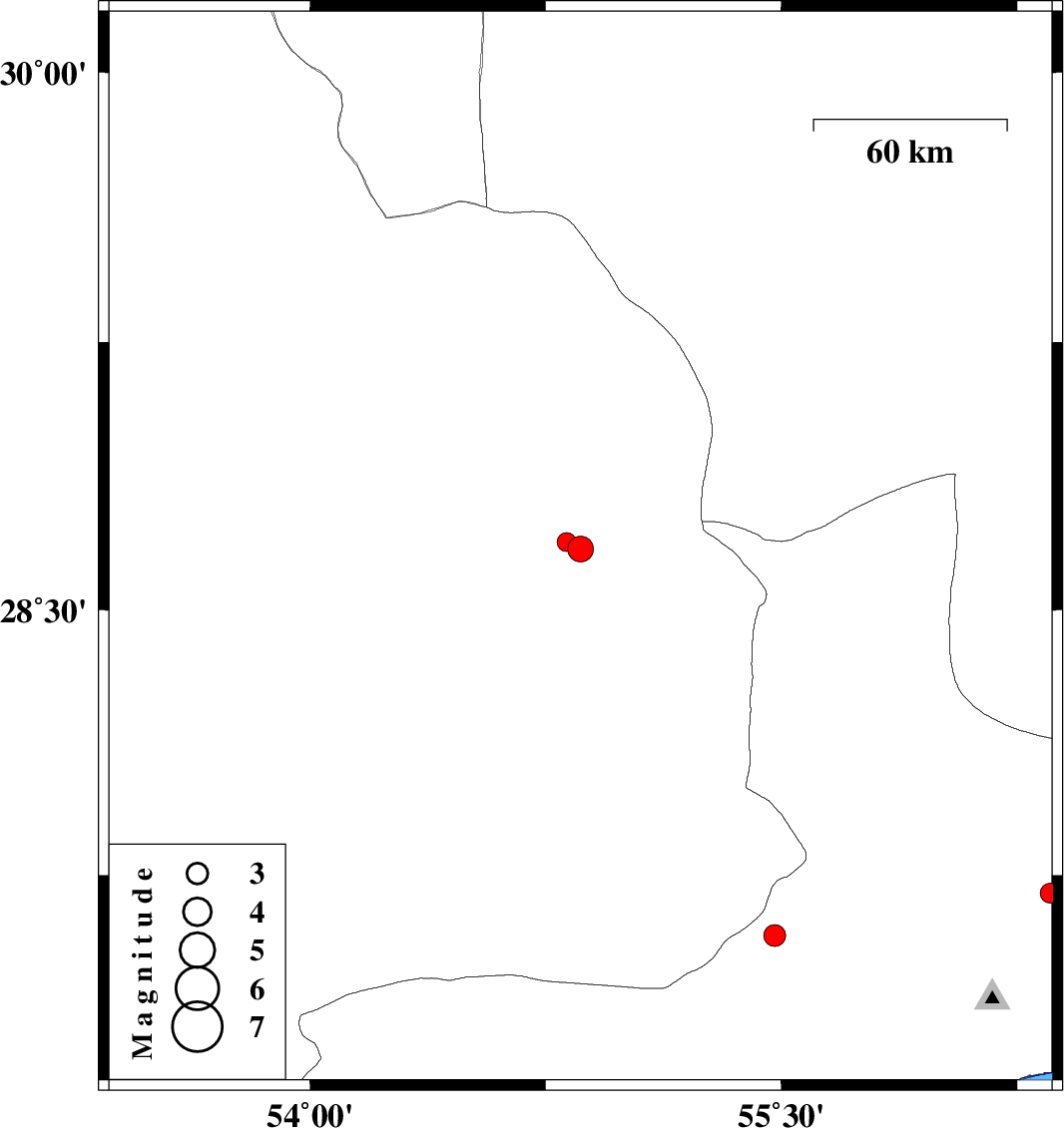 | 2018/09/15 | 21:37:56.5 | 02:07:56.5 | 28.67 | 54.861 | 14 | ML3.7 | Fars Province, 33 km -East of Darab | ||
