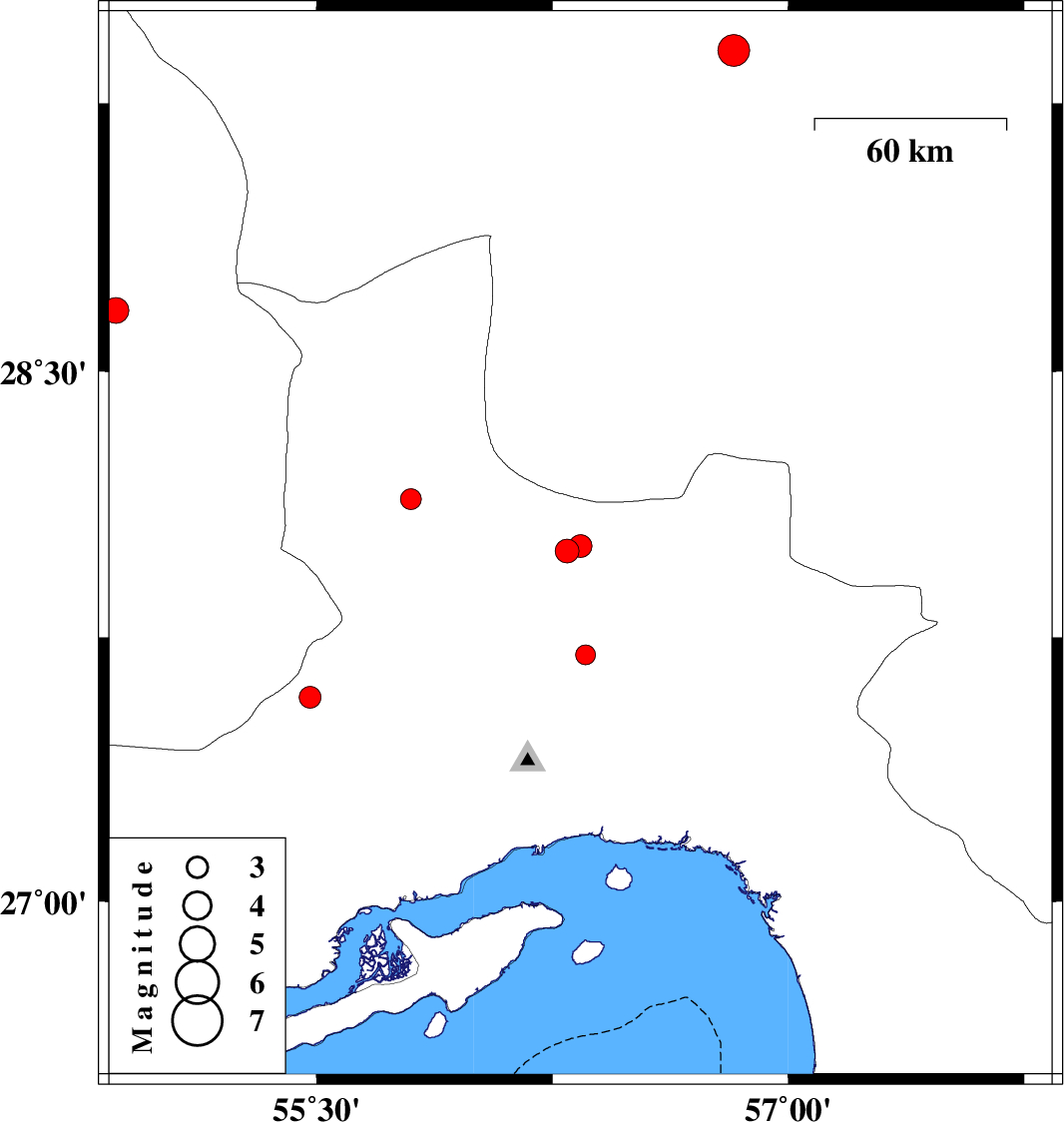 | 2018/09/14 | 07:18:44.3 | 11:48:44.3 | 27.58 | 55.479 | 6 | ML3.1 | Hormozgan Province, 91 km South-West of Hajiabad | ||