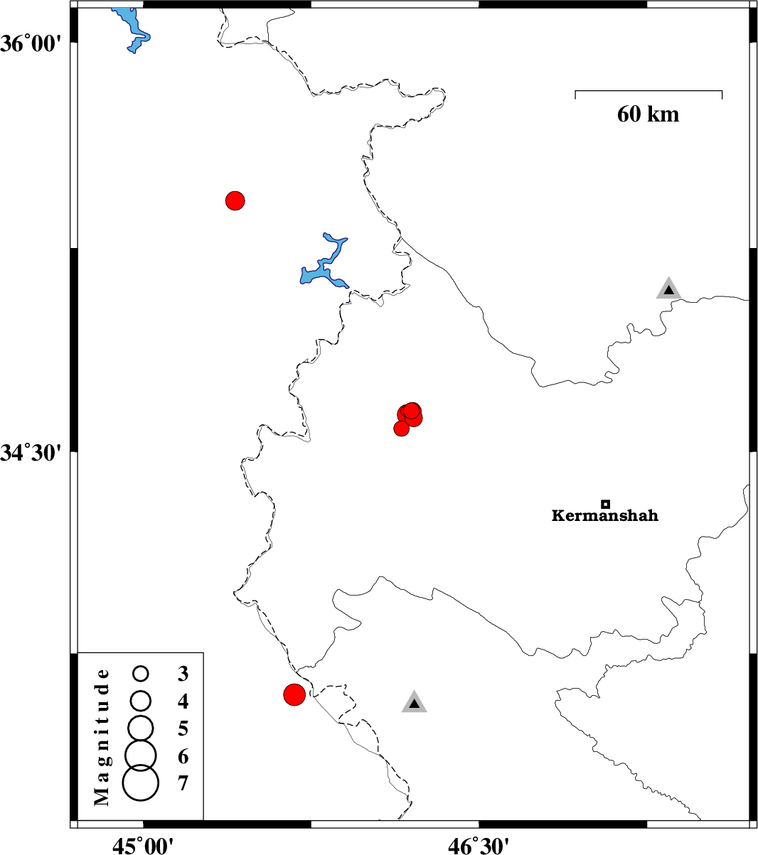 | 2018/09/20 | 12:57:44.7 | 17:27:44.7 | 34.625 | 46.207 | 15 | ML3.5 | Kermanshah Province, 32 km South-West of Javanrud | ||
