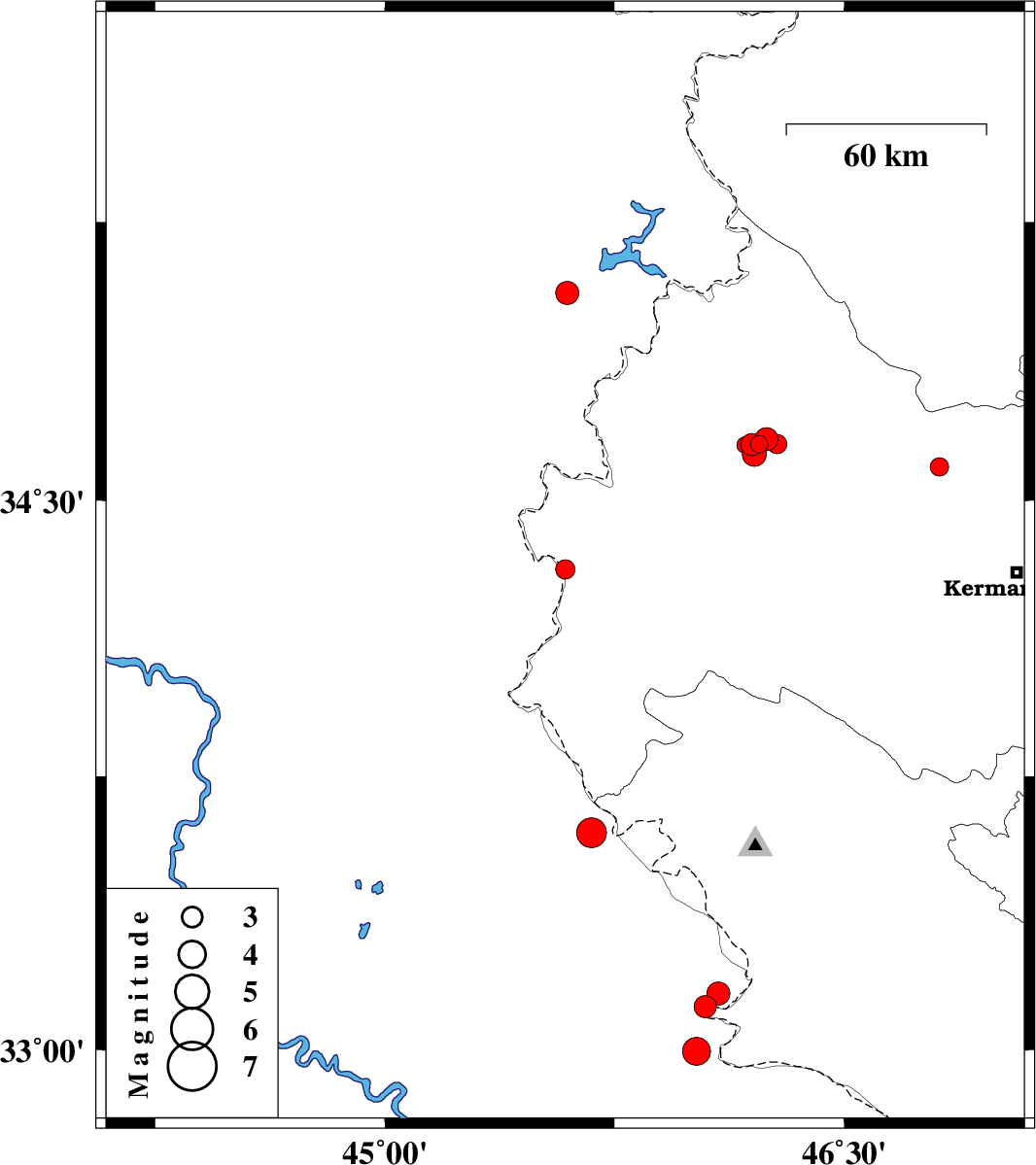 2018/09/24 | 04:42:18.3 | 08:12:18.3 | 34.591 | 46.811 | 15 | ML:2.7 | Kermanshah Province, 28 km South-West of Kamyaran | ||