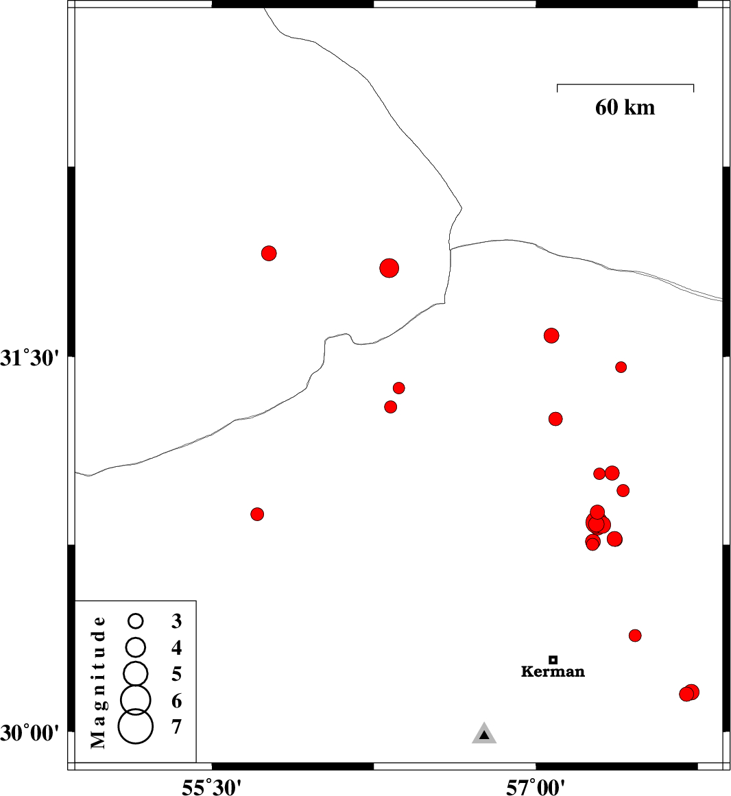 | 2018/09/25 | 22:37:00.2 | 02:07:00.2 | 30.386 | 57.459 | 14 | ML2.6 | Kerman Province, 38 km -East of Kerman | ||