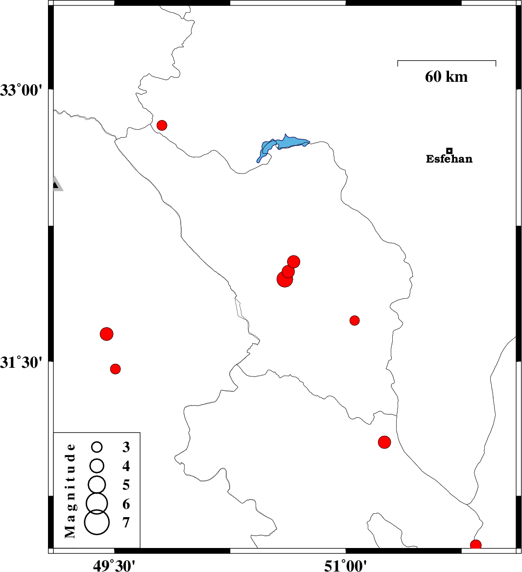 | 2018/09/04 | 18:14:42.3 | 22:44:42.3 | 32.801 | 49.808 | 14 | ML3 | Esfahan Province, 32 km South-West of Fereydunshahr |