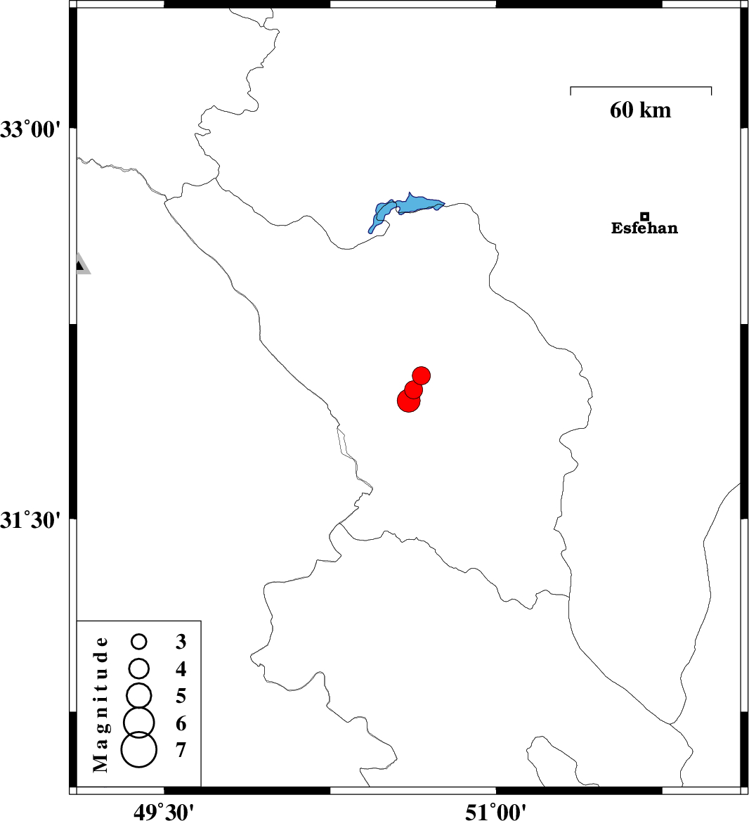 | 2018/10/02 | 03:10:51.7 | 06:40:51.7 | 31.997 | 50.627 | 15 | ML3.7 | Chaharmahal Bakhtiari Province, 3 km of Ardel | ||
