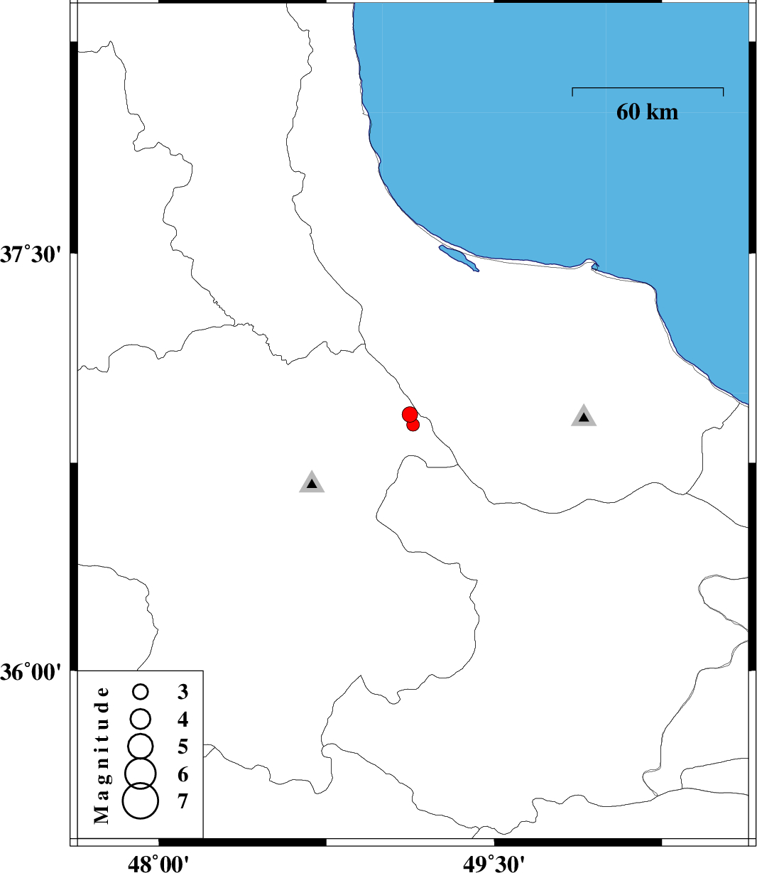 | 2018/10/01 | 11:38:47.3 | 15:08:47.3 | 36.887 | 49.137 | 6 | ML2.6 | Zanjan Province, 15 km -East of Abbar |