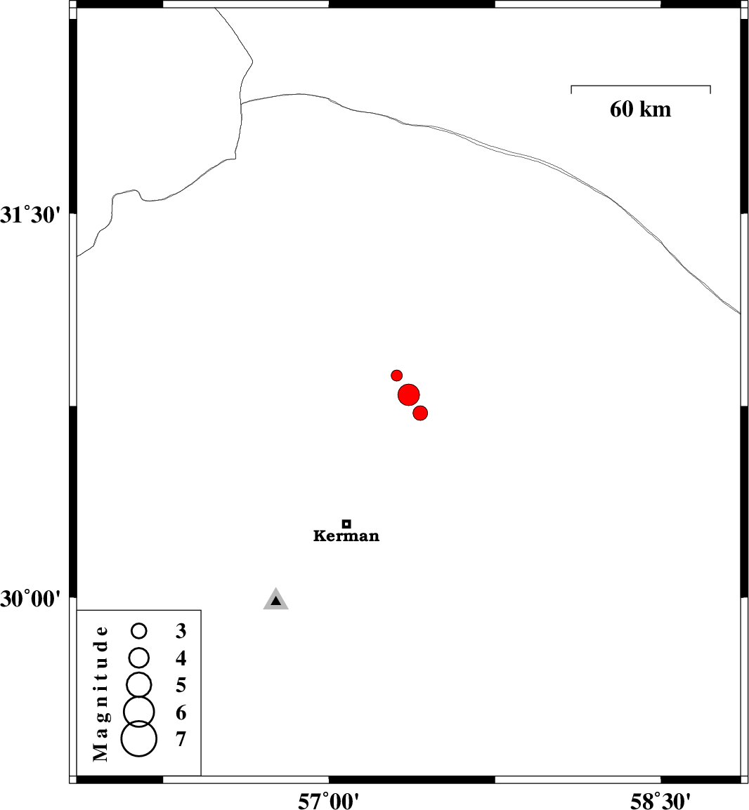 | 2018/09/29 | 18:17:57.3 | 21:47:57.3 | 30.723 | 57.413 | 14 | ML3 | Kerman Province, 58 km North-East of Kerman |
