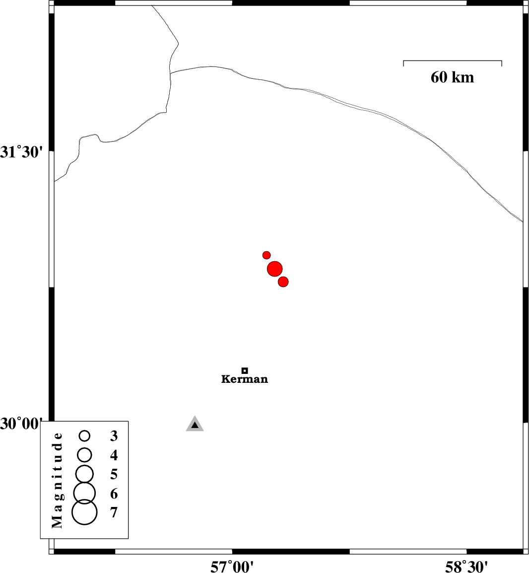 | 2018/10/03 | 23:53:01.6 | 03:23:01.6 | 30.794 | 57.36 | 14 | ML4.4 | Kerman Province, 62 km North-East of Kerman | ||
