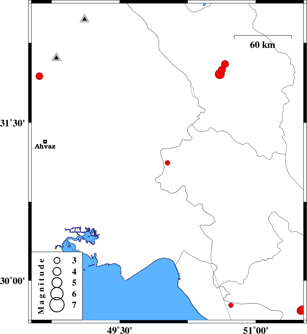| 2018/10/03 | 09:30:26.7 | 13:00:26.7 | 31.937 | 48.614 | 15 | ML3.5 | Khoozestan Province, 25 km South-West of Shushtar | ||