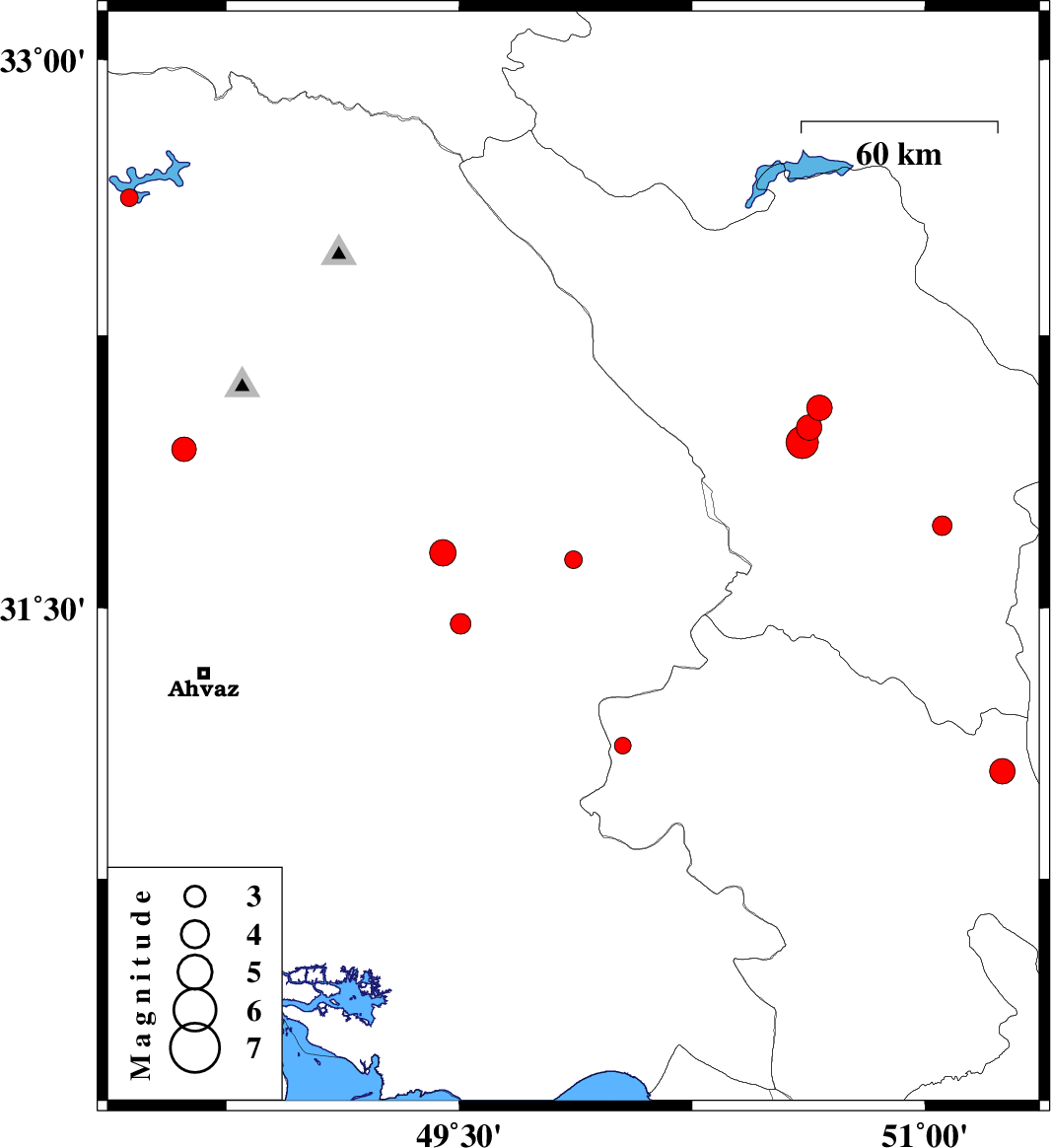 | 2018/09/23 | 08:51:53.1 | 12:21:53.1 | 32.625 | 48.438 | 14 | ML2.5 | Khoozestan Province, 20 km North of Andimeshk | ||