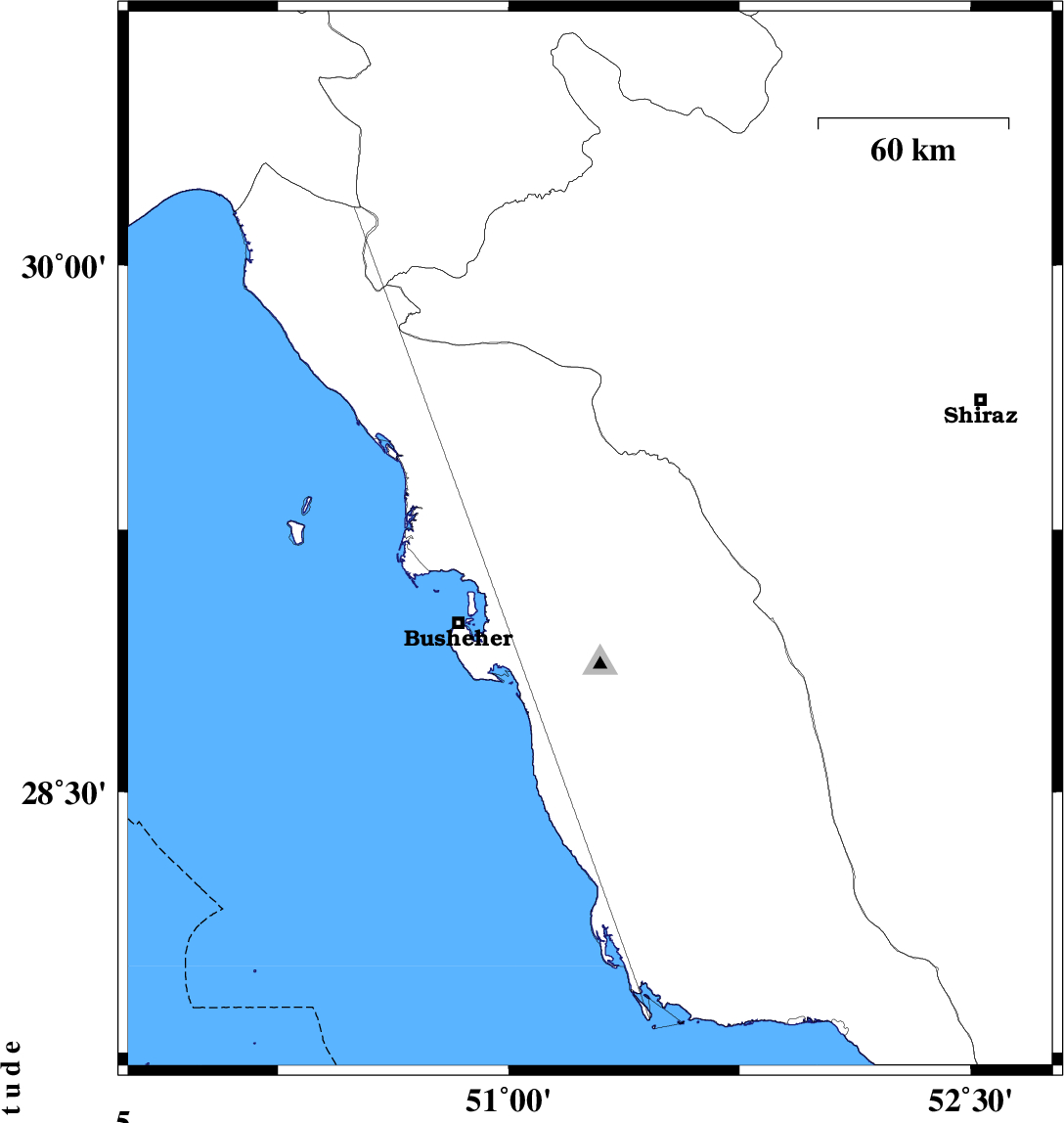 | 2018/10/06 | 01:23:57.1 | 04:53:57.1 | 29.215 | 51.265 | 15 | ML3.7 | Bushehr Province, 8 km of Borazjan | ||