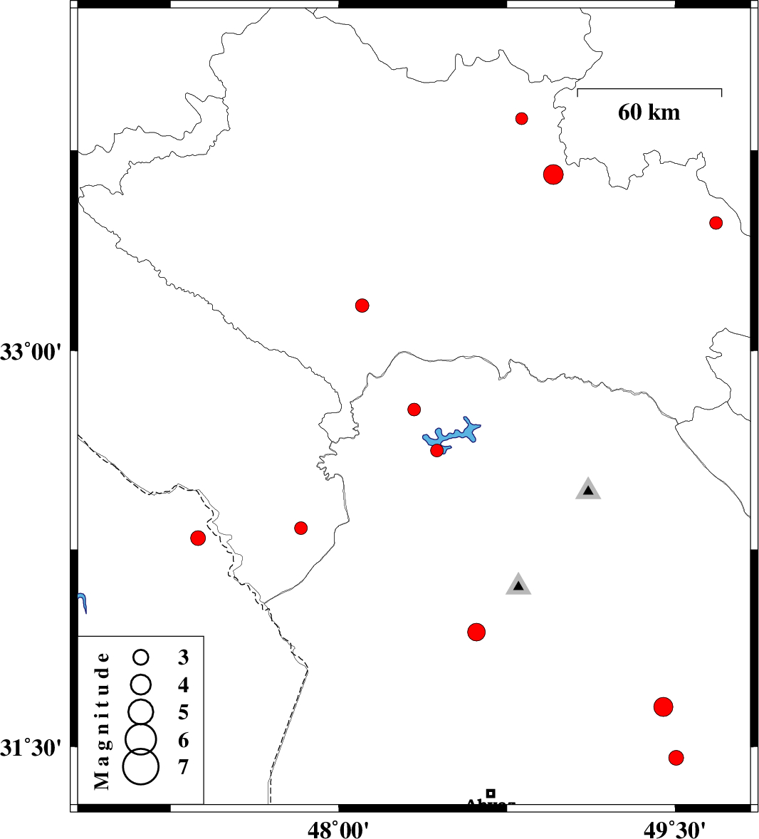 | 2018/09/23 | 08:51:53.1 | 12:21:53.1 | 32.625 | 48.438 | 14 | ML2.5 | Khoozestan Province, 20 km North of Andimeshk | ||