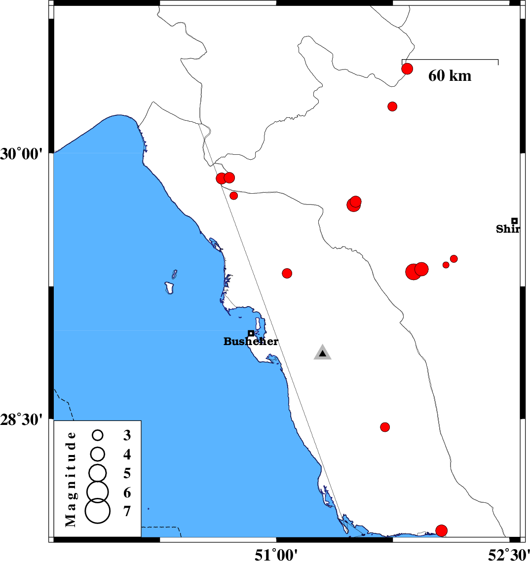 | 2018/10/04 | 11:34:42.6 | 15:04:42.6 | 29.324 | 51.068 | 14 | ML2.8 | Bushehr Province, 15 km -West of Borazjan | ||