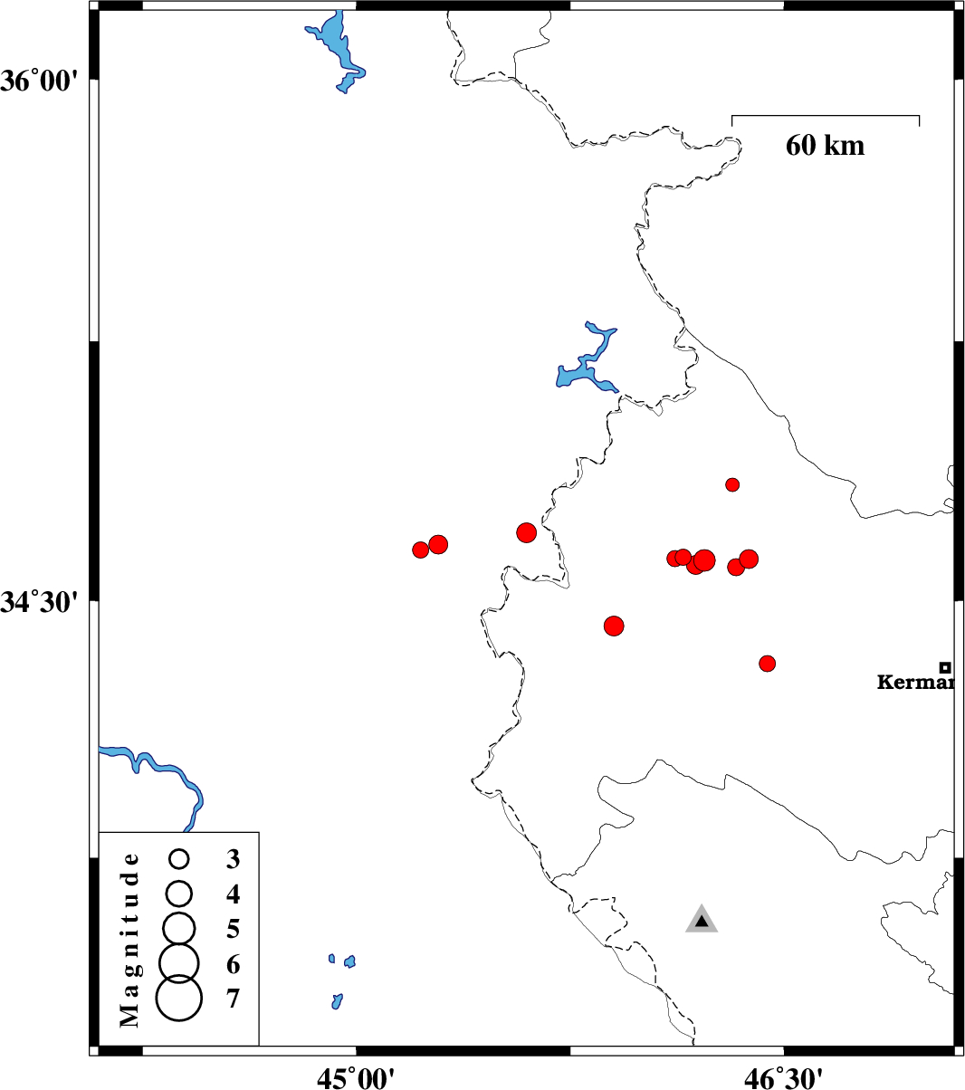 | 2018/10/04 | 01:37:12.9 | 05:07:12.9 | 34.604 | 46.19 | 6 | ML2.9 | Kermanshah Province, 32 km North-East of Sar-e pol-e zahab | ||