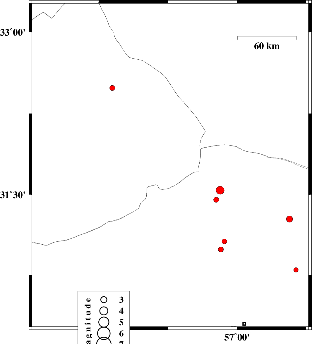 | 2018/09/21 | 00:33:47.3 | 05:03:47.3 | 30.773 | 57.363 | 14 | ML3.1 | Kerman Province, 60 km North-East of Kerman | ||