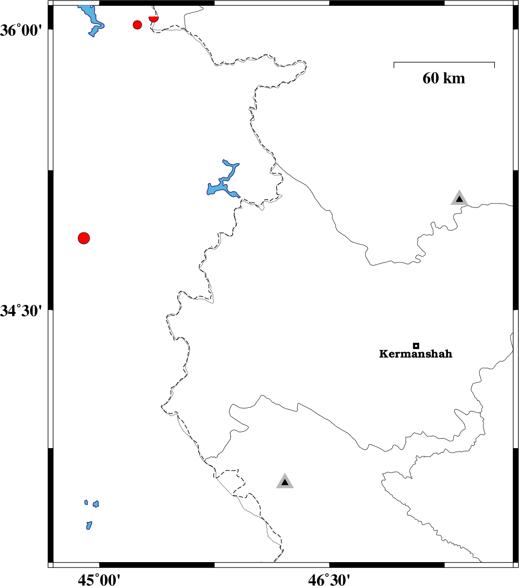 | 2018/09/25 | 00:42:02.7 | 04:12:02.7 | 34.663 | 46.282 | 6 | ML2.7 | Kermanshah Province, 24 km South-West of Javanrud | ||