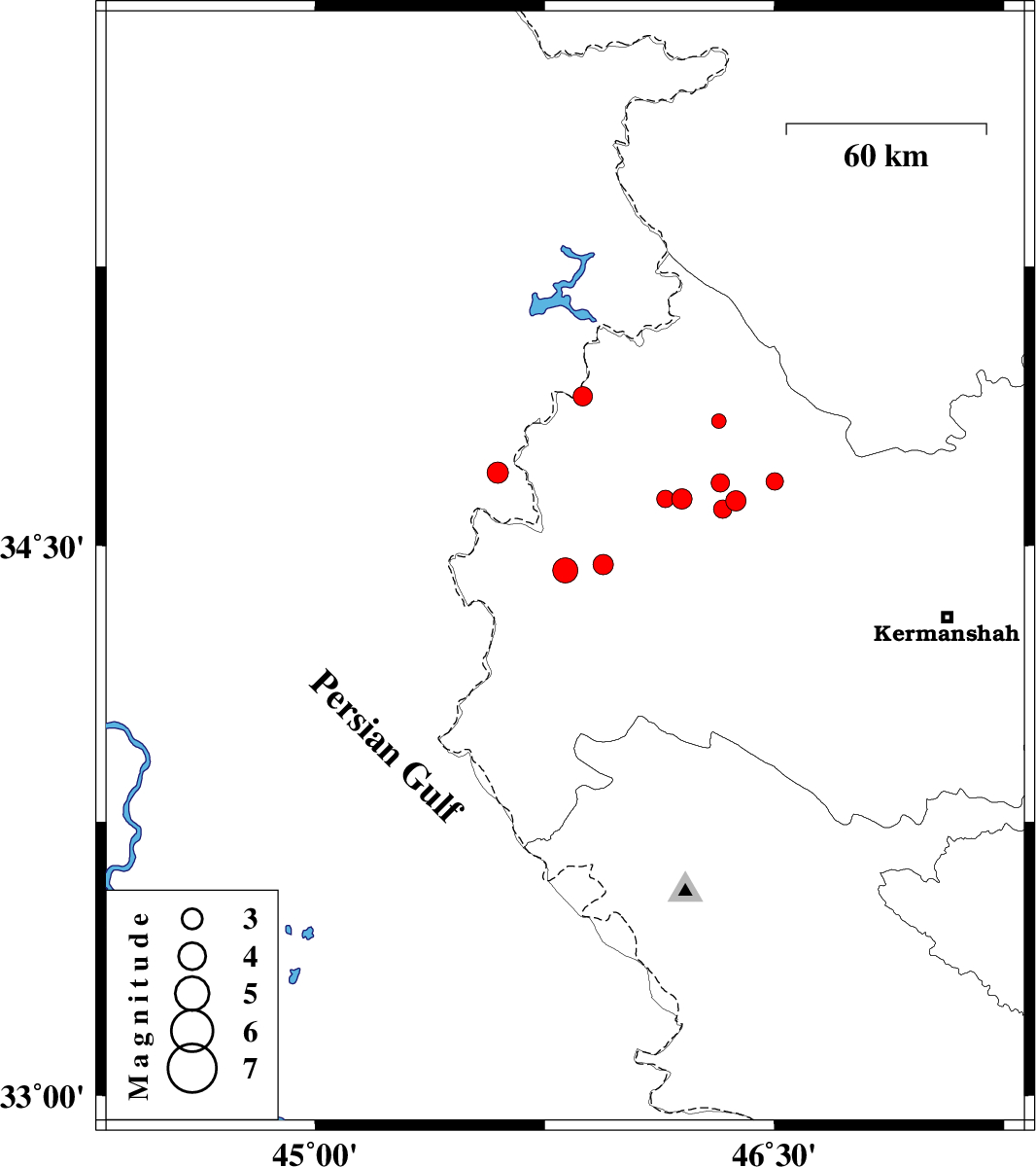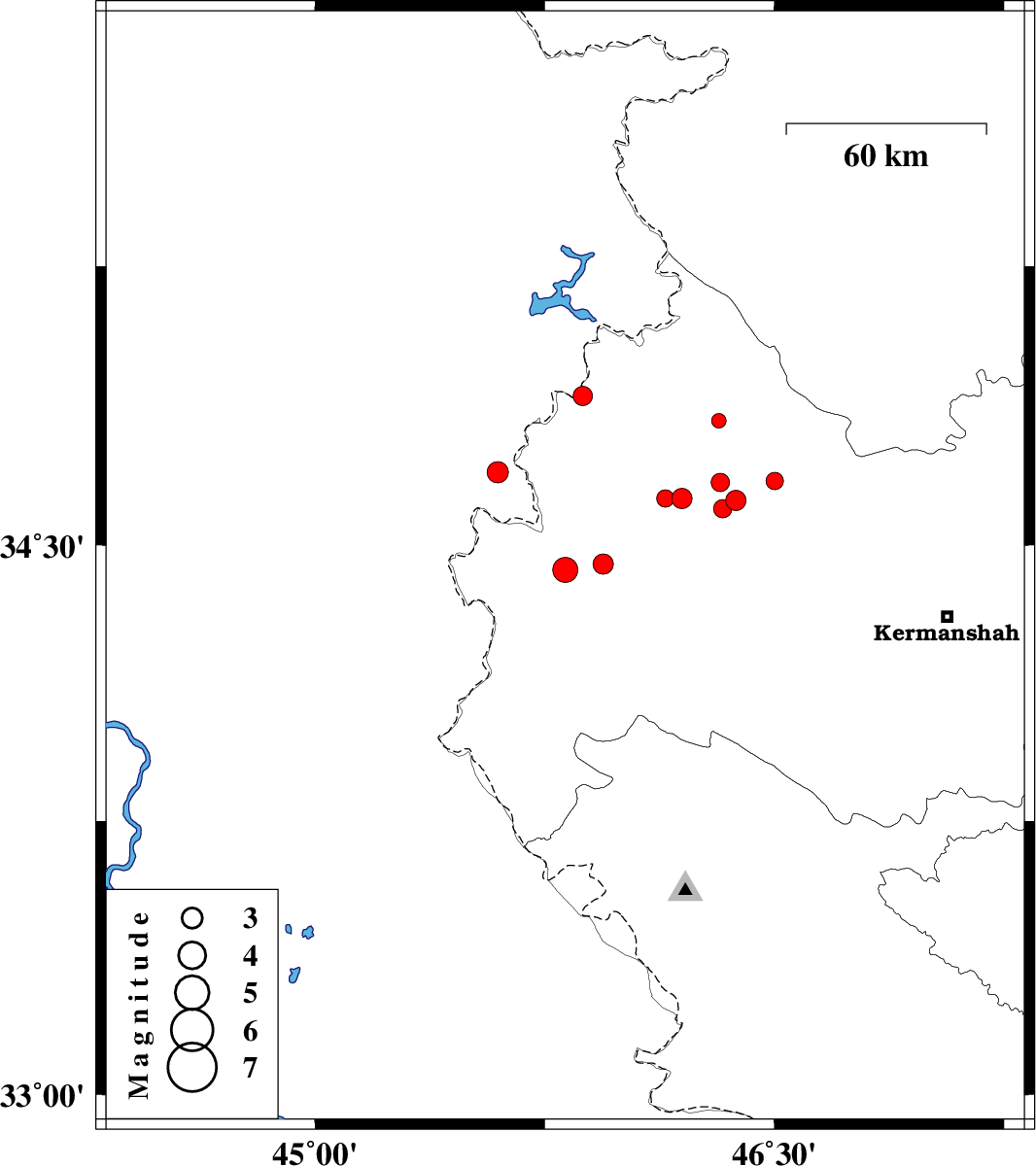 | 2018/10/06 | 07:55:24.8 | 11:25:24.8 | 34.598 | 46.331 | 7 | ML2.7 | Kermanshah Province, 28 km South-West of Javanrud |