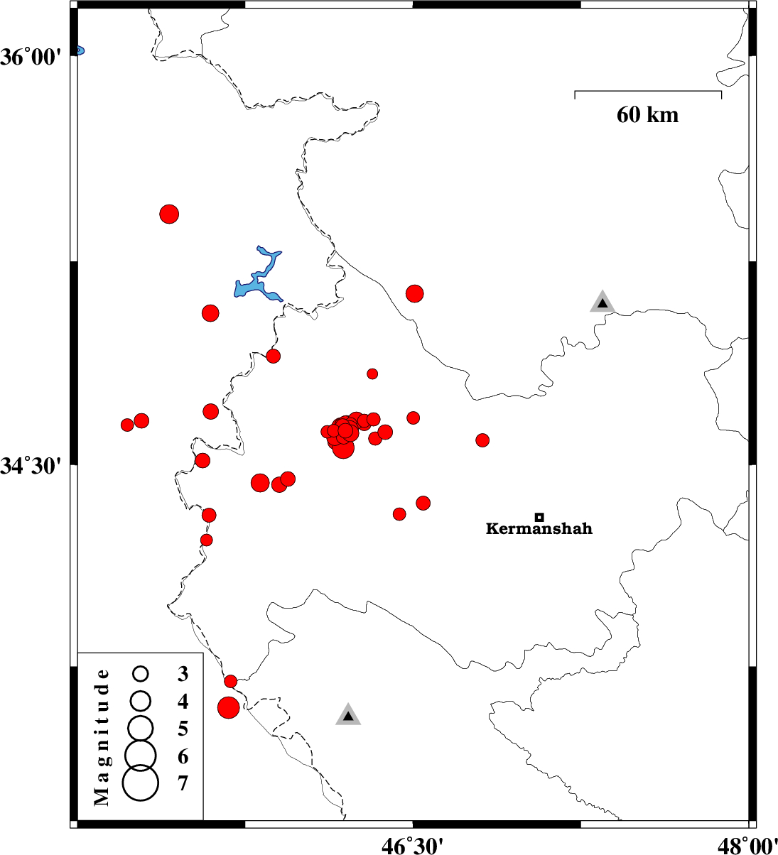 | 2018/09/25 | 00:42:02.7 | 04:12:02.7 | 34.663 | 46.282 | 6 | ML2.7 | Kermanshah Province, 24 km South-West of Javanrud | ||