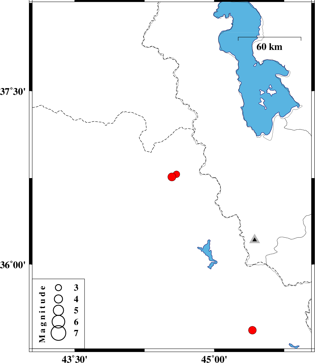 | 2018/10/14 | 15:08:31.5 | 18:38:31.5 | 36.76 | 44.544 | 14 | ML4 | Iraq, 53 km -West of Piranshahr | ||