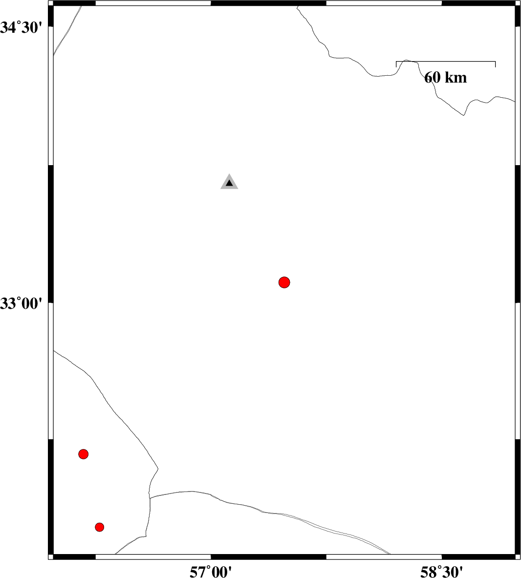 | 2018/10/14 | 21:55:22.7 | 01:25:22.7 | 33.112 | 57.476 | 14 | ML3.2 | Yazd Province, 74 km South-East of Tabas | ||