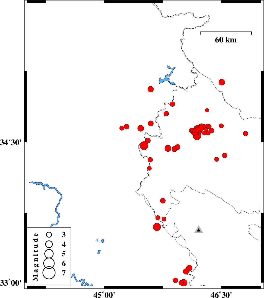 | 2018/10/14 | 12:45:51.0 | 16:15:51.0 | 34.631 | 46.121 | 17 | ML2 | Kermanshah Province, 28 km North-East of Sar-e pol-e zahab | ||
