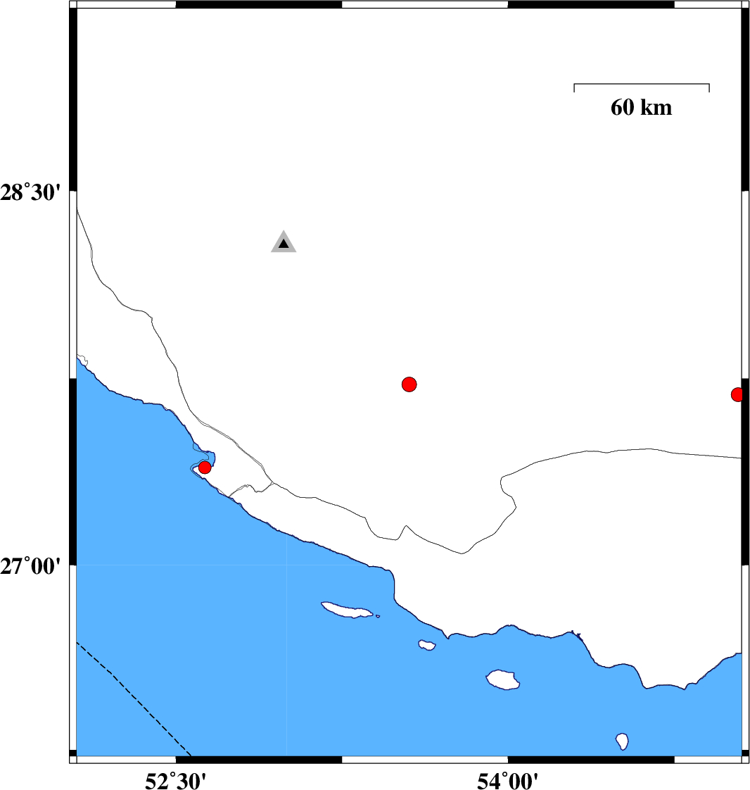 | 2018/10/15 | 20:37:44.4 | 00:07:44.4 | 27.393 | 52.631 | 14 | ML2.6 | Bushehr Province, 31 km South-West of Mehr | ||