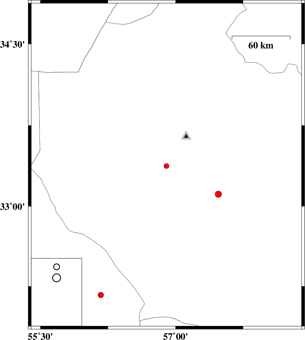 2018/10/17 | 00:32:08.9 | 04:02:08.9 | 33.374 | 56.899 | 14 | ML2.5 | Yazd Province, 25 km South of Tabas | ||