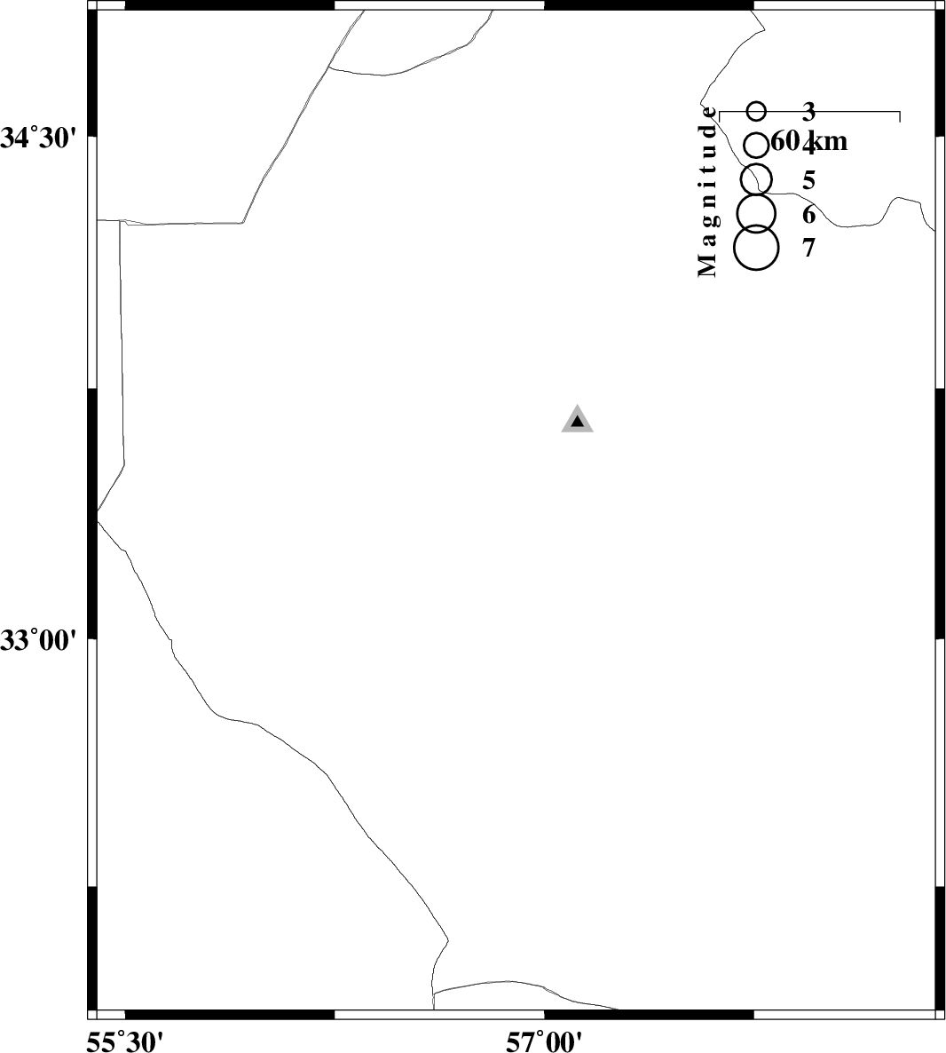 | 2018/10/14 | 21:55:22.7 | 01:25:22.7 | 33.112 | 57.476 | 14 | ML3.2 | Yazd Province, 74 km South-East of Tabas | ||