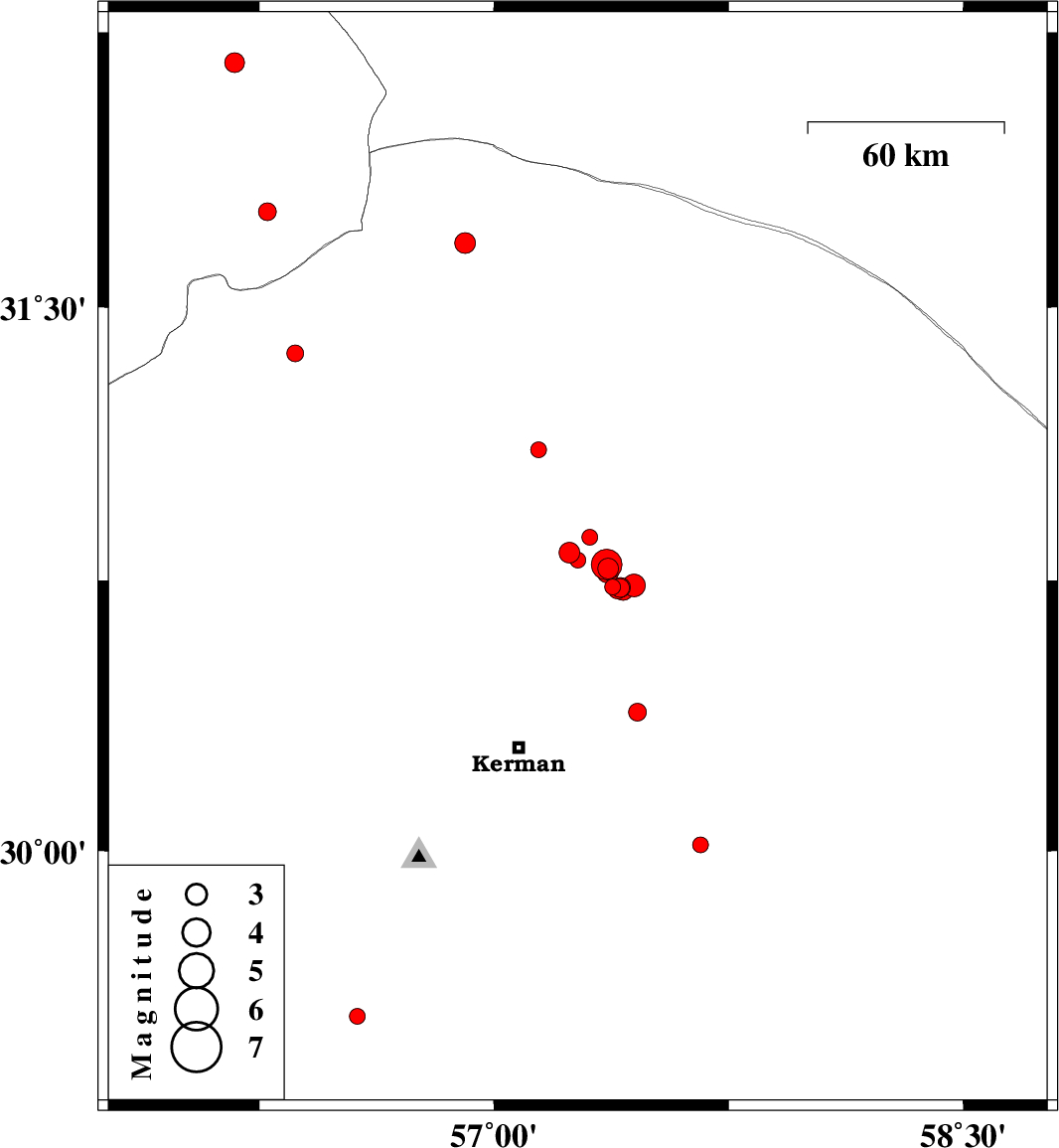 2018/09/21 00:33:47.3 05:03:47.3 30.77357.36314 ML3.1 Kerman Province, 60 km North-East of Kerman