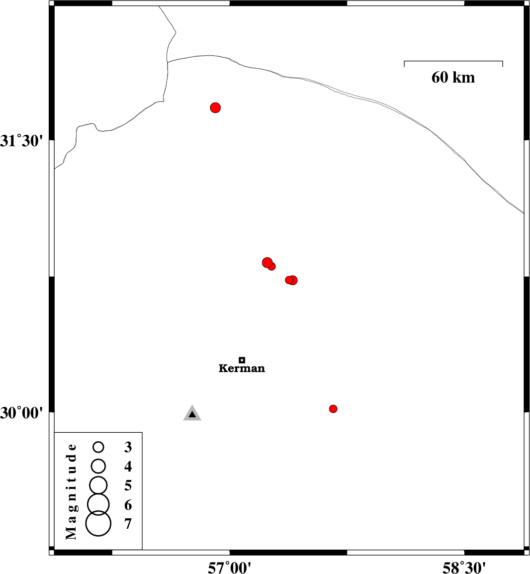 2018/10/12 06:09:06.5 09:39:06.5 30.72957.40314 ML2.7 Kerman Province, 58 km North-East of Kerman