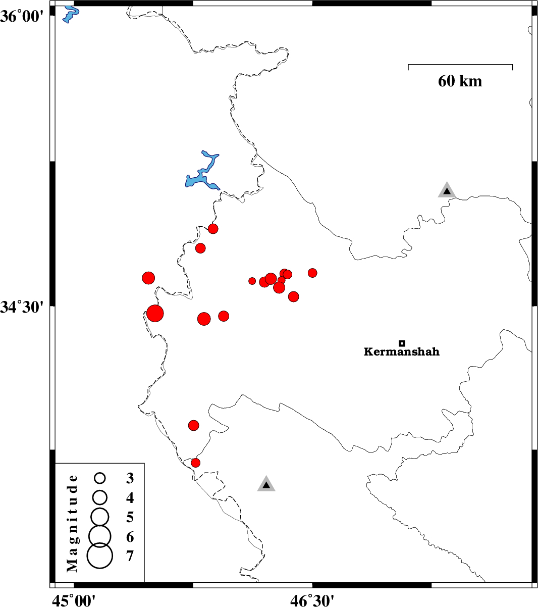 | 2018/10/14 | 12:45:51.0 | 16:15:51.0 | 34.631 | 46.121 | 17 | ML2 | Kermanshah Province, 28 km North-East of Sar-e pol-e zahab | ||